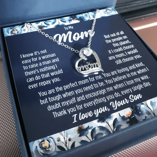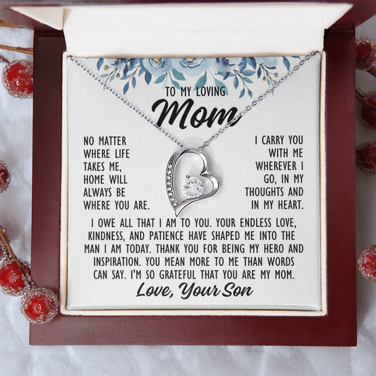 To My Love Mom From Son "No matter where..." Zirconia Heart Necklace