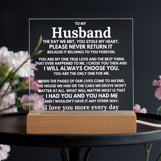 To My Husband "The day we met..." Acrylic Plaque With Lighted Base