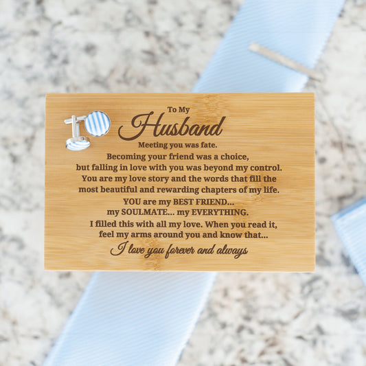 To My Husband "Meeting You Was Fate..." Engraved Tie Gift Box: Includes Premium Tie, Tie Clip, and Matching Handkerchief