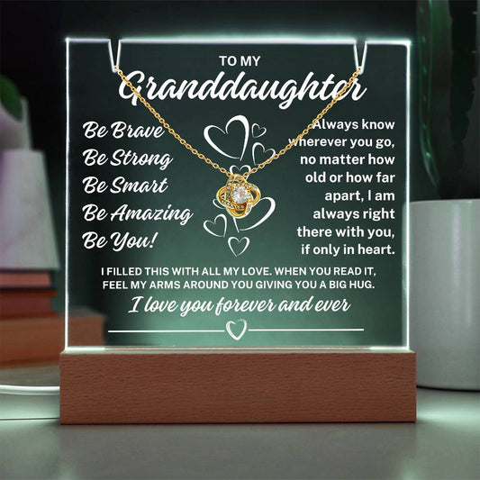 To My Granddaughter "Be You" Acrylic Plaque with Lighted Base with Love Knot Necklace