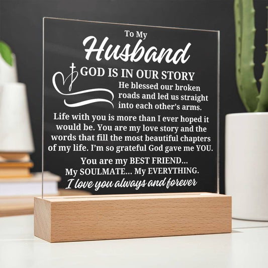 To My Husband "God is in our story" Acrylic Plaque With Lighted Base