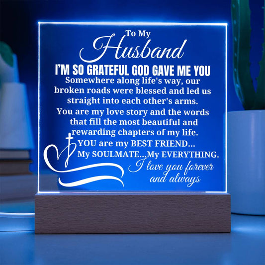 To My Husband "I'm so grateful God gave me you" Acrylic Plaque With Lighted Base