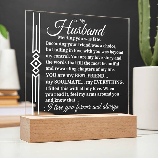 To My Husband "Meeting you was..." Acrylic Plaque With Lighted Base