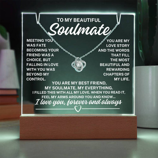 To My Beautiful Soulmate "Meeting You Was Fate..." Lighted Acrylic Keepsake With Love Knot Necklace