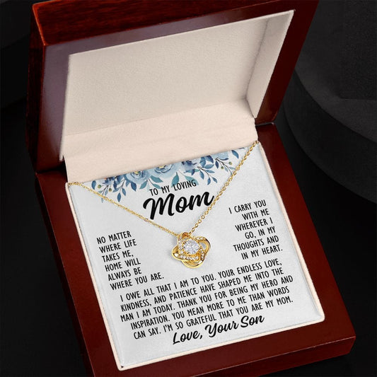 To Mom From Son "No matter where life..." Love Knot Necklace