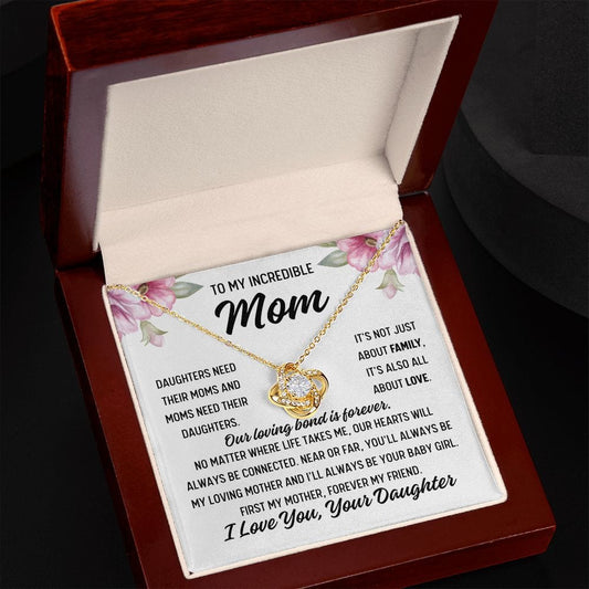 To Mom From Daughter "Daughters need their..." Love Knot Necklace
