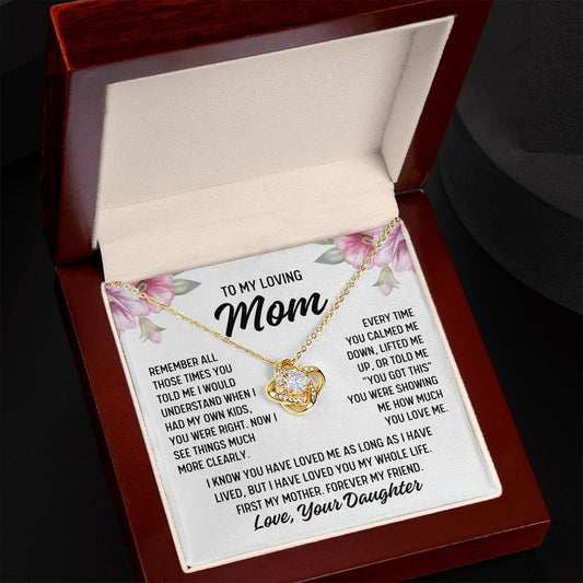 To Mom From Daughter "Remember all those times..." Love Knot Necklace