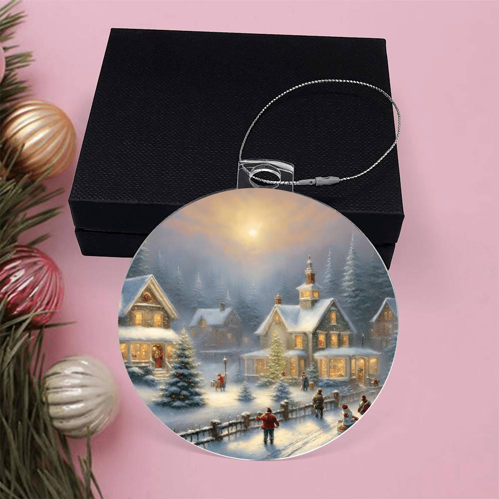 Christmas Village Acrylic Ornament With Gift Box