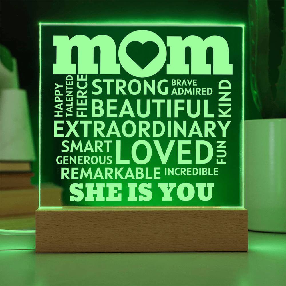 [Best Seller] MOM "She Is You" Acrylic Plaque With Lighted Base, Uniquely Perfect Gift for Mom