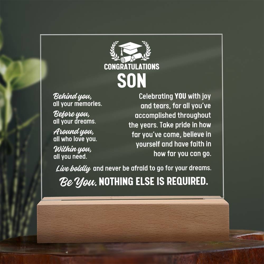 Son Graduation Gift, Acrylic Plaque With Lighted Base