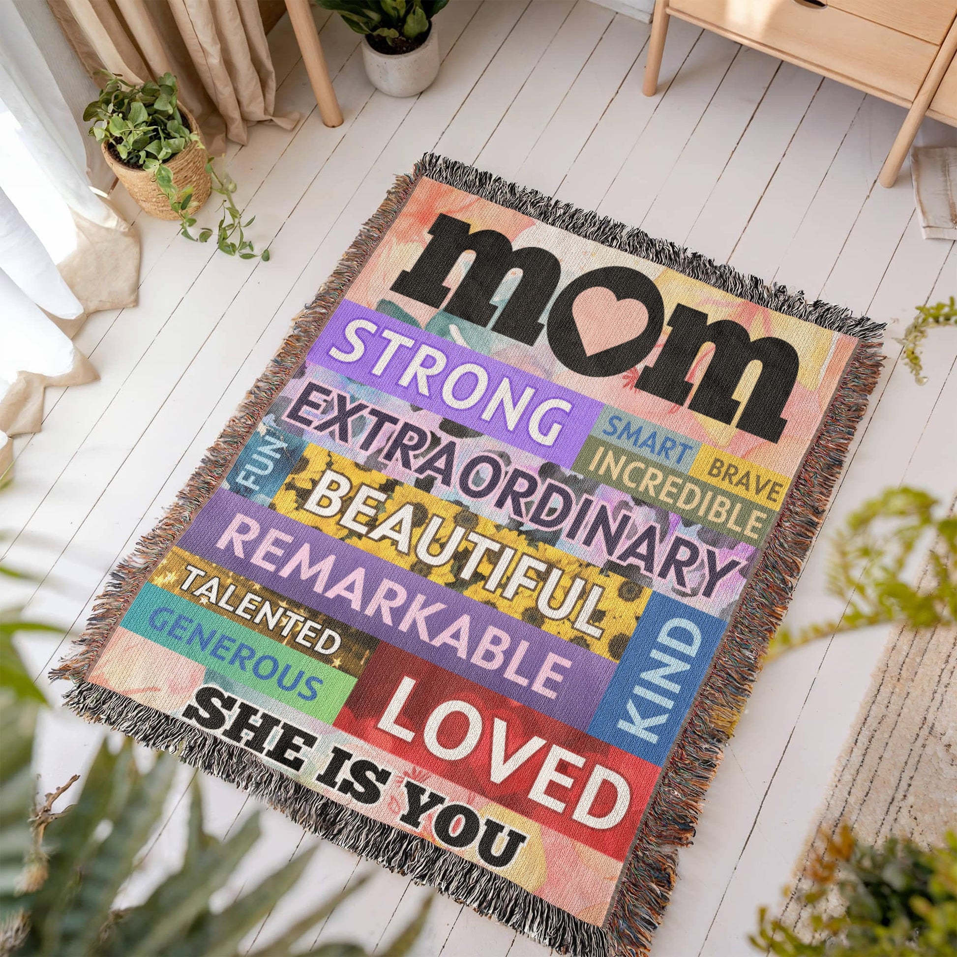 MOM "She Is You" Loving Affirmations Woven Heirloom Blanket 50" X 60"