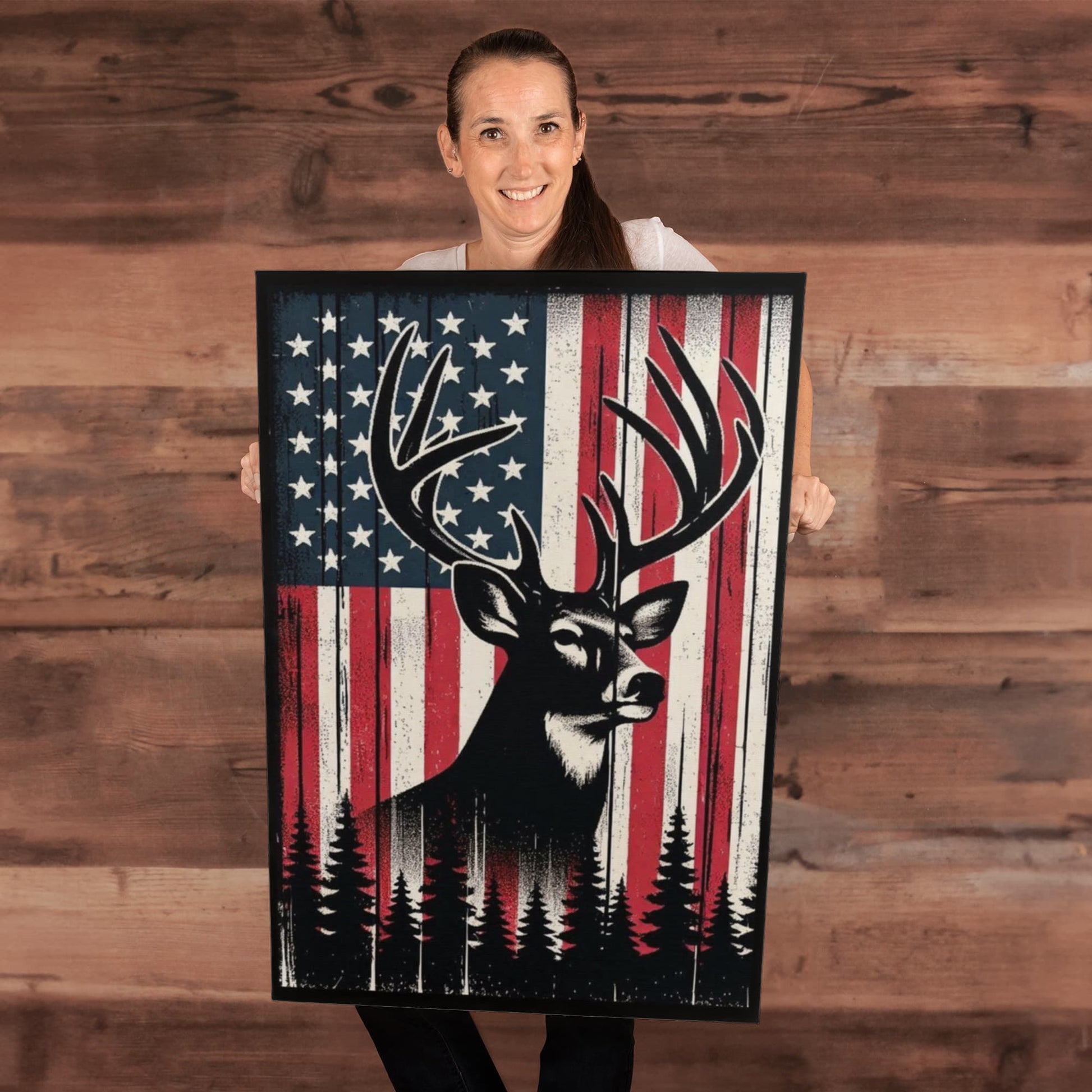 Proud American Deer Hunter, Man Cave, Workshop, Rustic Art Premium Wrapped Canvas