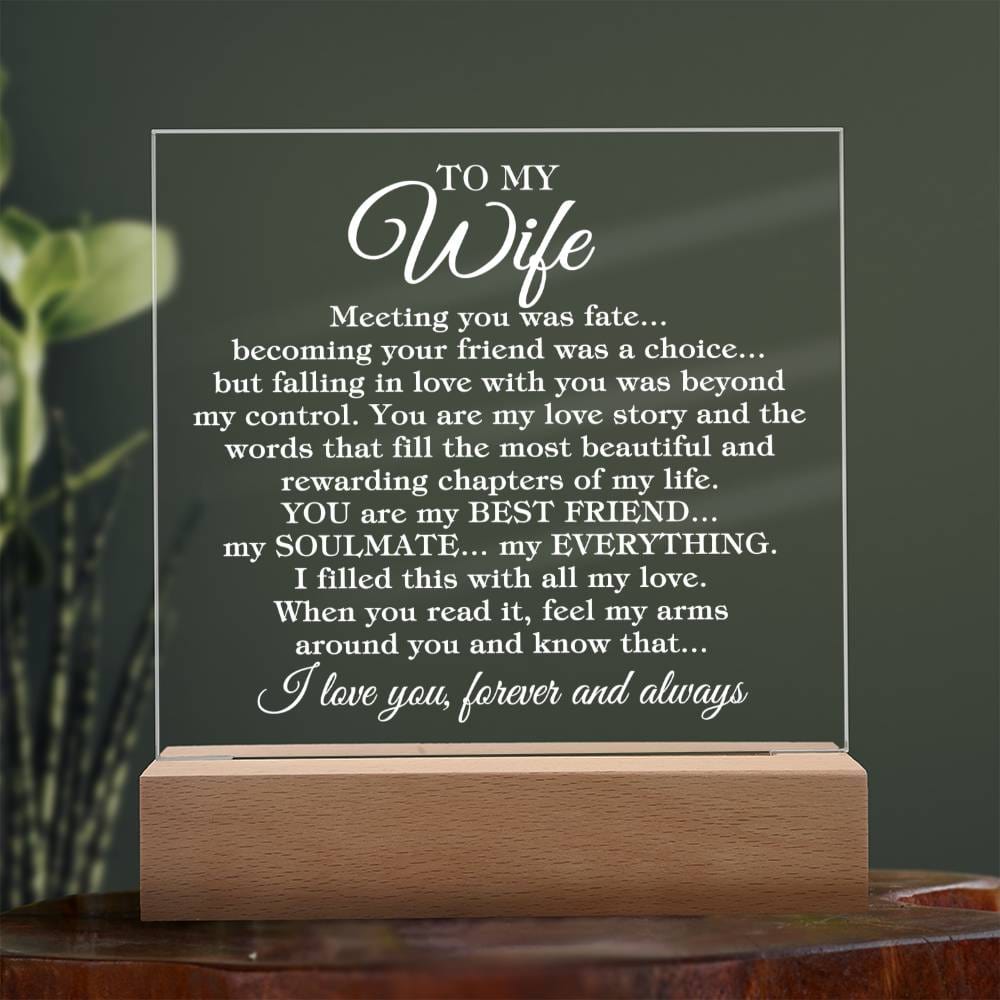 To My Wife "Meeting you was..." Acrylic Plaque With Lighted Base
