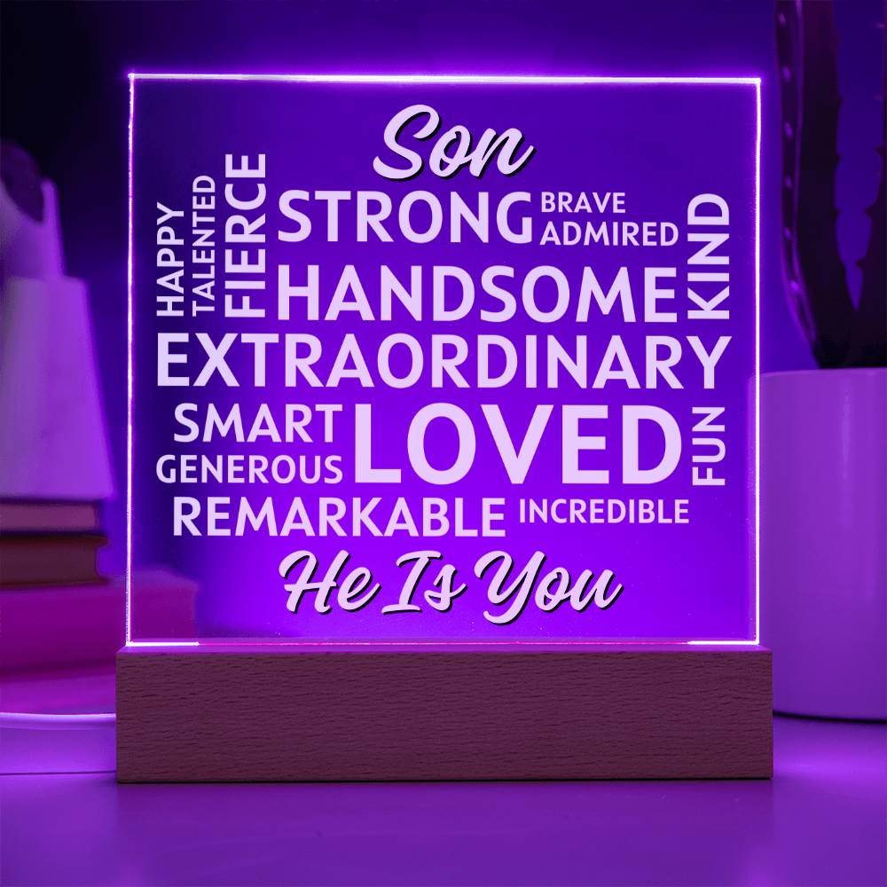 Son... He Is You. Positive Affirmations Acrylic Plaque with Lighted Base