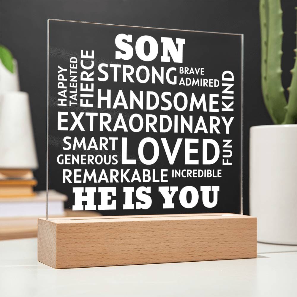 SON "He Is You" Positive Affirmations Acrylic Plaque With Lighted Base
