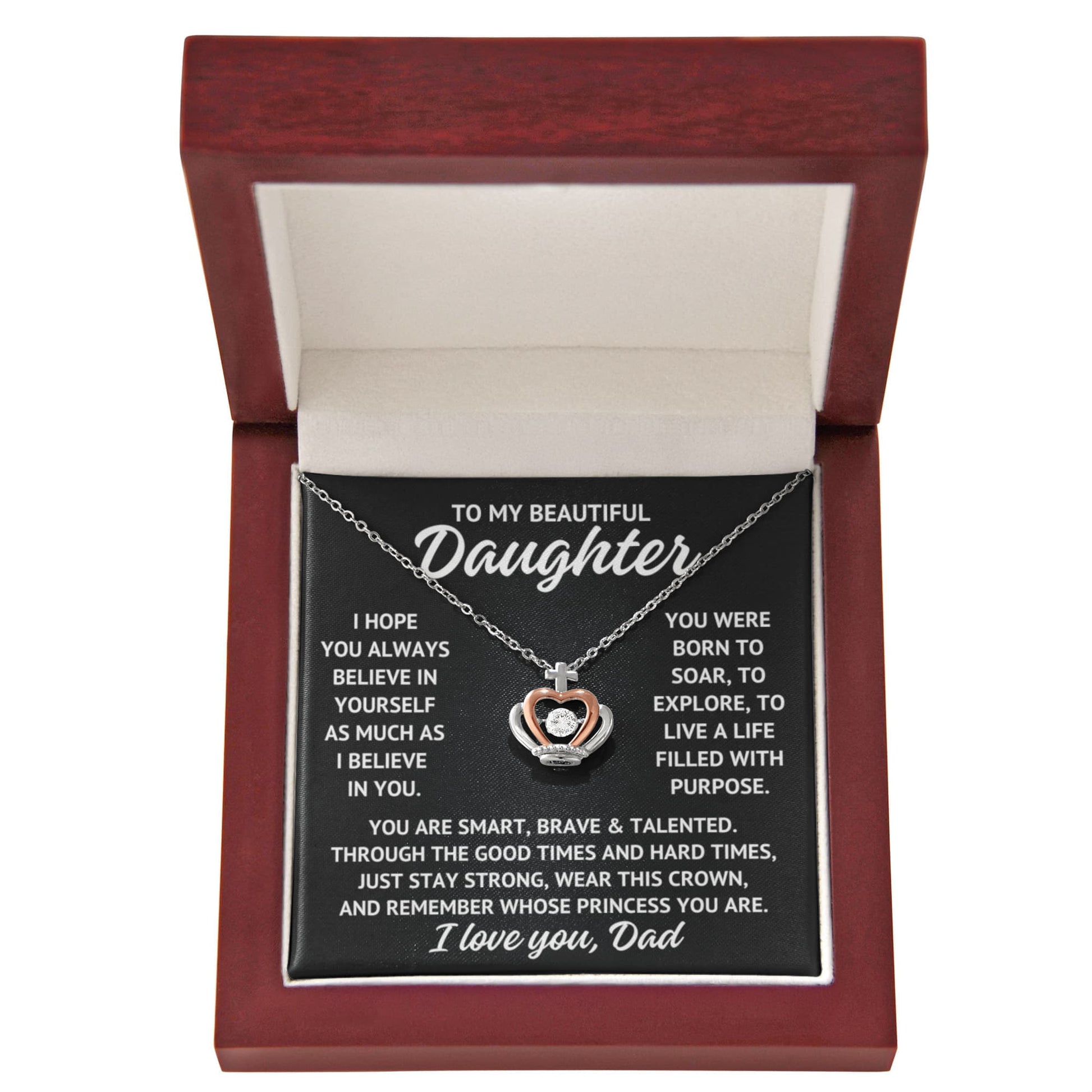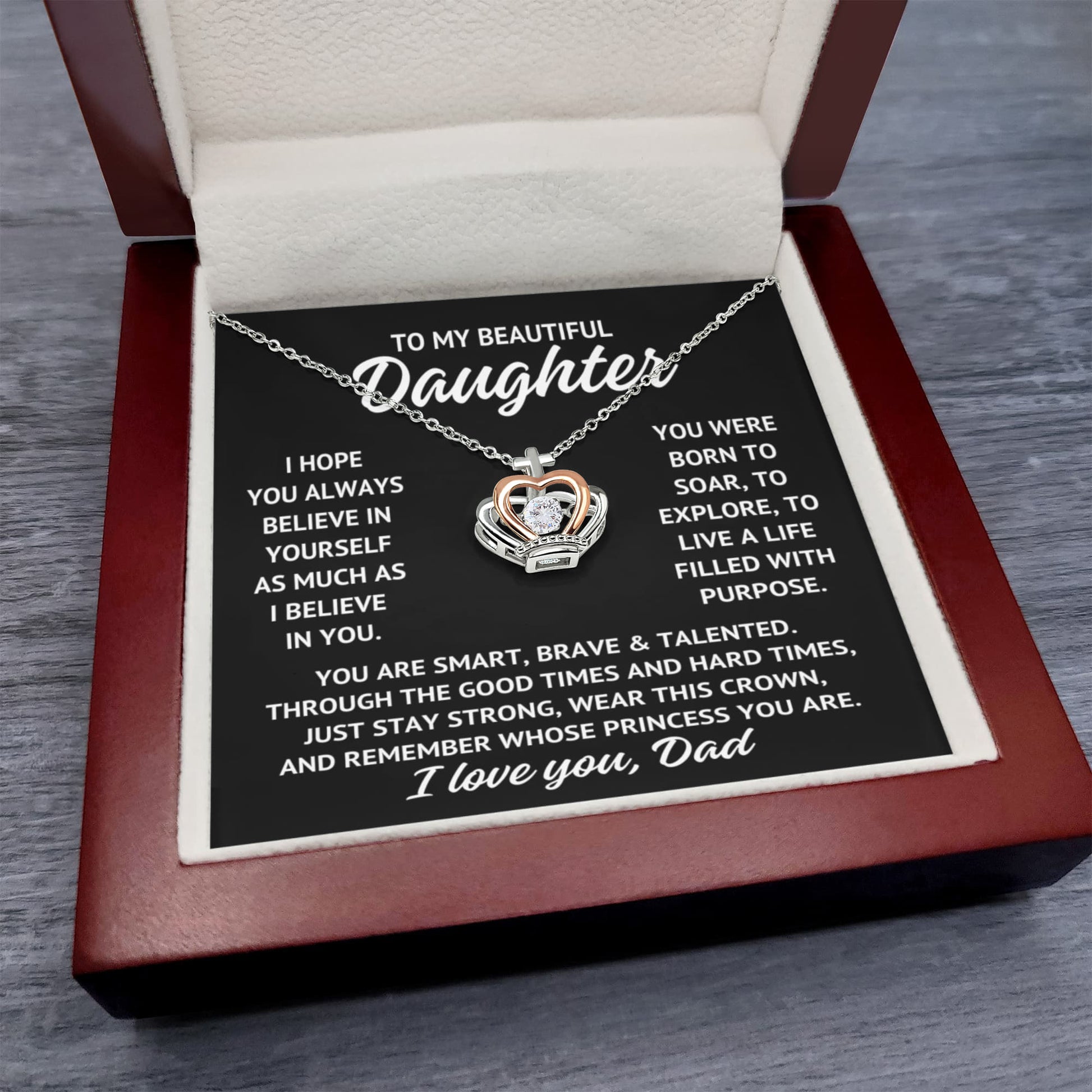 To My Beautiful Daughter "Princess..." Rose Gold and Sterling Silver .925 Crown Necklace With Lighted Luxury Box