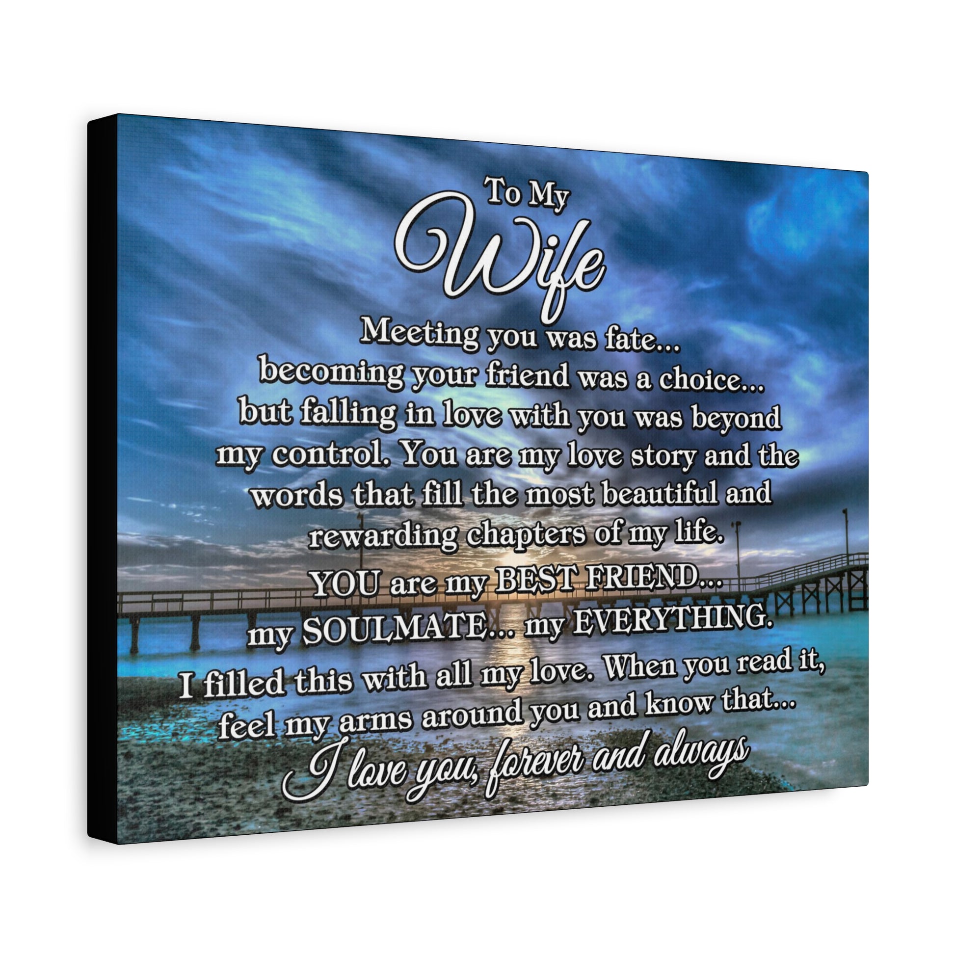 To My Wife "Meeting you was..." Canvas Art (Gulf Pier Blue Sunset)