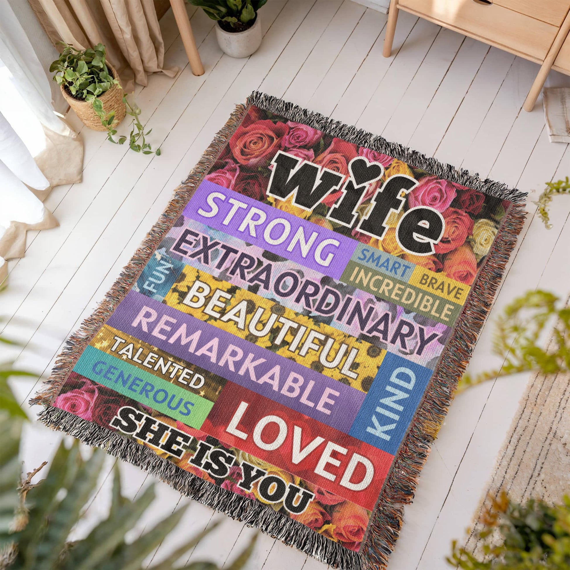 WIFE "She Is You" Loving Affirmations Woven Heirloom Blanket 50" X 60"